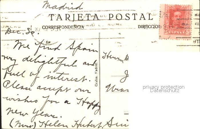 alte Postkarte Madrid Spain Calle de Alcala banco del Rio de la Plata y banco de Espana postalisch gelaufen Erhaltung siehe scans