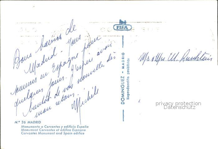 old postcard Madrid Spain Cervantes Monument Spain edifice postalisch gelaufen Erhaltung siehe scans