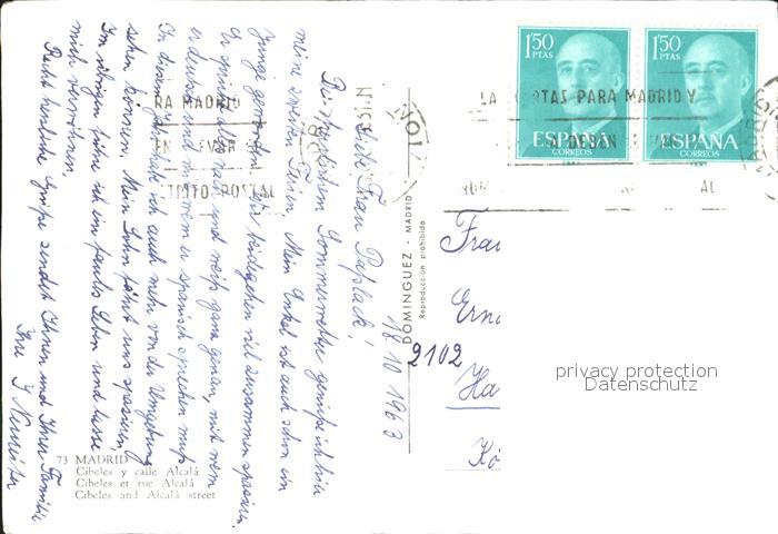 old postcard Madrid Spain Cibeles Alcala street postalisch gelaufen Erhaltung siehe scans