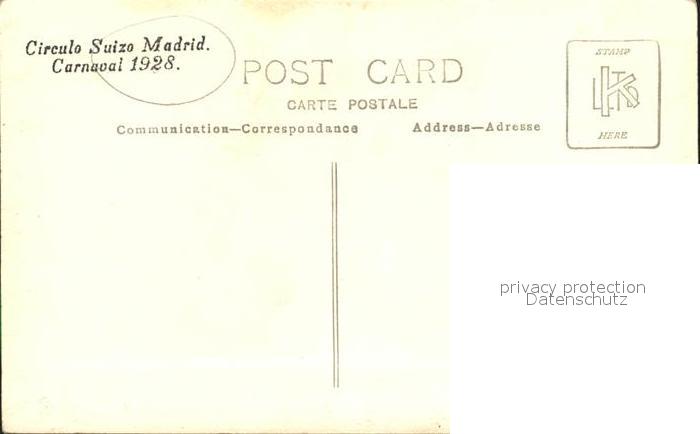 Madrid Spain Circulo Suizo Madrid Carneval 1928 postalisch nicht gelaufen Erhaltung siehe scans