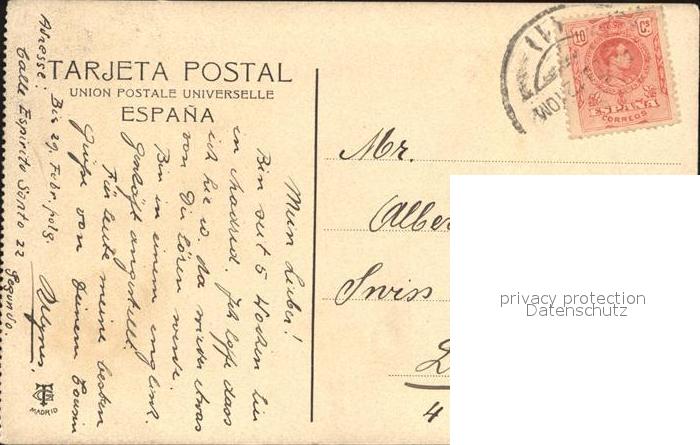 old postcard Madrid Spain El fenix Espanol y calle de Alcala` postalisch gelaufen Erhaltung siehe scans