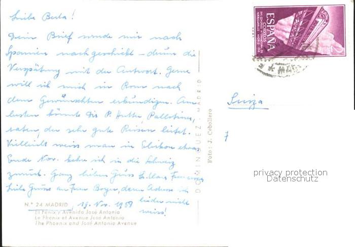 old postcard Madrid Spain El Fenix y Avenida Jose Antonio postalisch gelaufen Erhaltung siehe scans