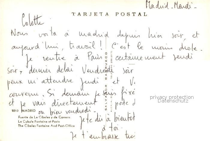 Madrid Spain Fuente de la Cibeles y de Correos postalisch nicht gelaufen Erhaltung siehe scans [FriedD77]