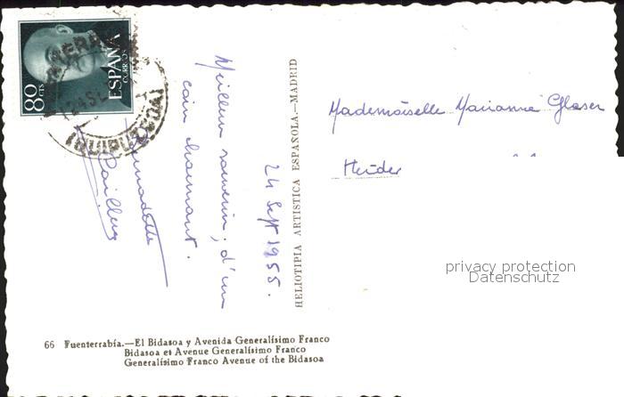 alte Postkarte Madrid Spain Fuenterrabia Generalismo Franco postalisch gelaufen