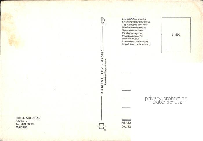 Madrid Spain Hotel Asturias postalisch nicht gelaufen Erhaltung siehe scans