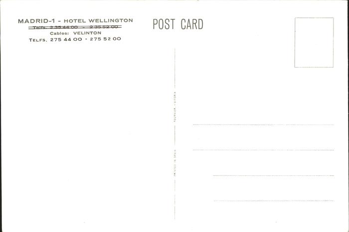 Madrid Spain Hotel Wellington postalisch nicht gelaufen Erhaltung siehe scans