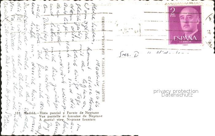 alte Postkarte Madrid Spain La Fuente de Neptuno postalisch gelaufen Erhaltung siehe scans
