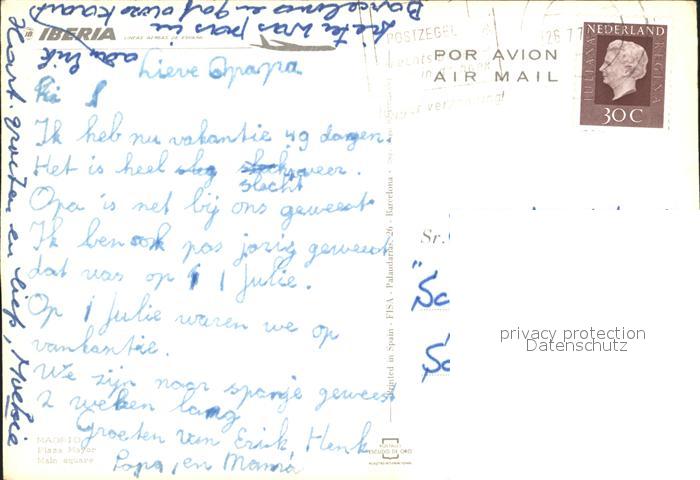 old postcard Madrid Spain Main square postalisch gelaufen Erhaltung siehe scans