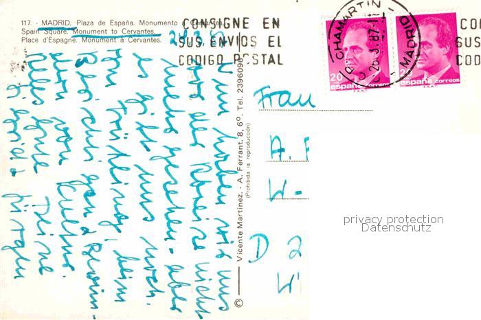 old postcard Madrid Spain Monument to Cervantes postalisch gelaufen Erhaltung siehe scans [WerneD78]