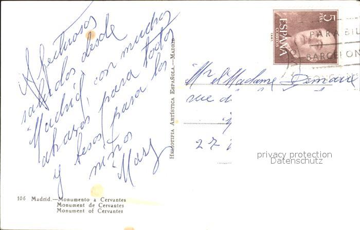 old postcard Madrid Spain Monumento a Cervantes postalisch gelaufen Erhaltung siehe scans