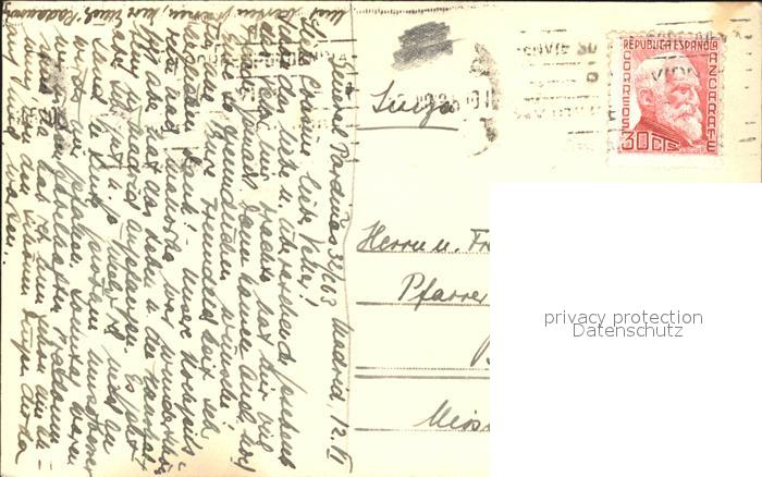 old postcard Madrid Spain Palacio Real Plaza Armeria postalisch gelaufen Erhaltung siehe scans