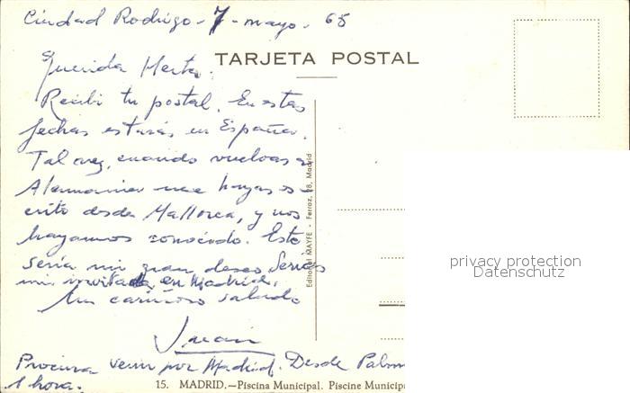 Madrid Spain Piscina Municipal postalisch nicht gelaufen Erhaltung siehe scans