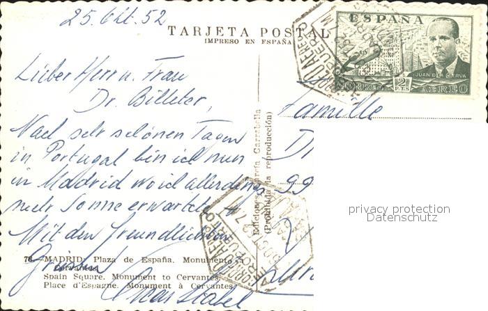 alte Postkarte Madrid Spain Plaza de Espana Monumento postalisch gelaufen