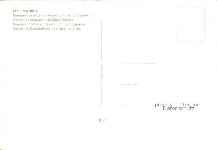 Madrid Spain Plaza de Espania Monumento a Cervantes postalisch nicht gelaufen Erhaltung siehe scans