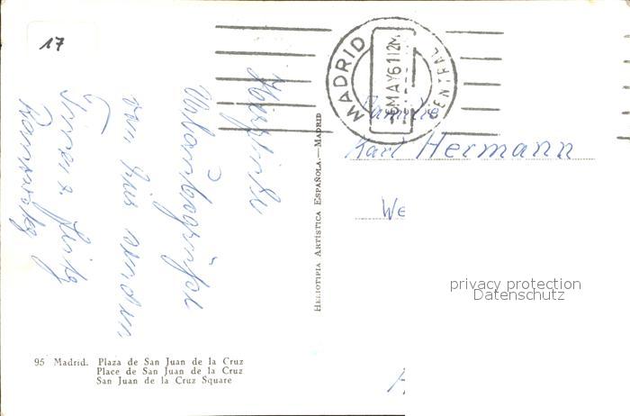 old postcard Madrid Spain Plaza de San Juan de la Cruz postalisch gelaufen Erhaltung siehe scans