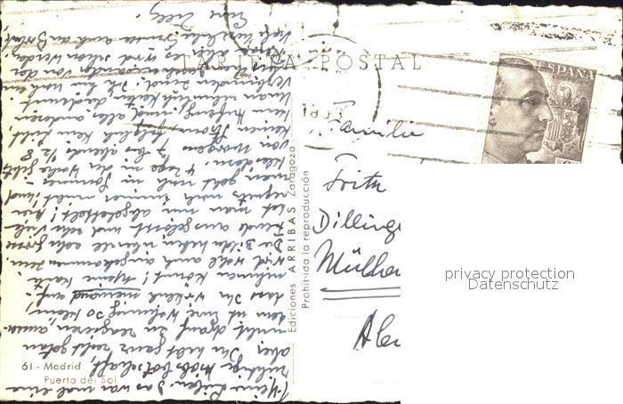 old postcard Madrid Spain Puerta del Sol postalisch gelaufen Erhaltung siehe scans