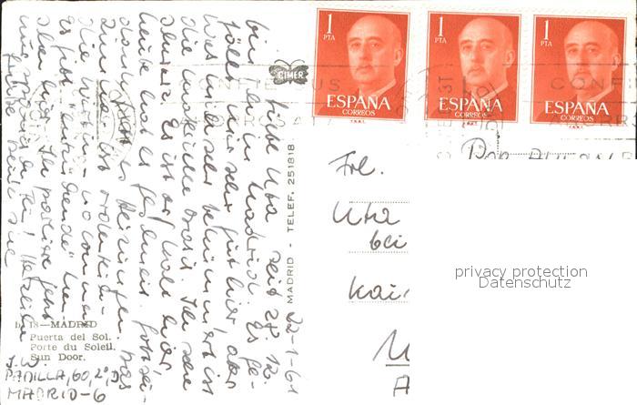 old postcard Madrid Spain Puerta del Sol postalisch gelaufen Erhaltung siehe scans
