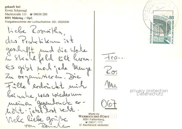 73667057 alte Postkarte Maehring Oberpfalz St Anna Kirche Ortsmitte Fliegeraufnahme postalisch gelaufen Erhaltung siehe scans [WerneD78] KatCode: 11110009377139