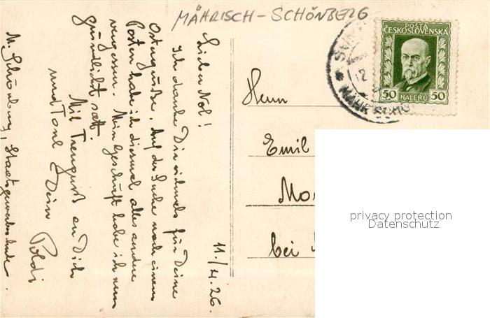 old postcard Maehrisch-Schoenberg Staatsgewerbeschule postalisch gelaufen Erhaltung siehe scans [KathaD81]