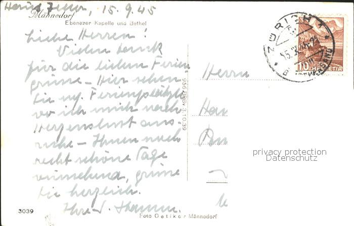 11652239 alte Postkarte Maennedorf Ebenezer Kapelle und Bethel postalisch gelaufen Erhaltung siehe scans KatCode: 11470260895364