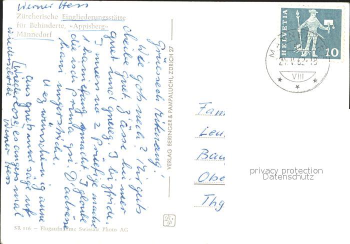 11658203 alte Postkarte Maennedorf Fliegeraufnahme Eingliederungsstaette fuer Behinderte Appisberg postalisch gelaufen Erhaltung siehe scans KatCode: 11470260895364