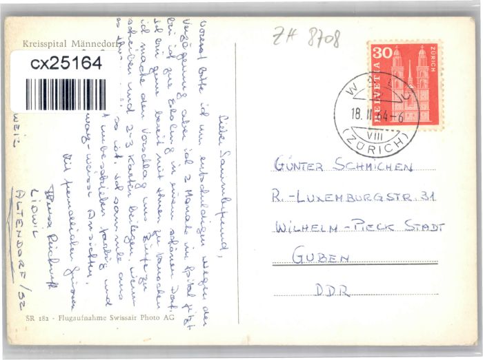 10753395 alte Postkarte Maennedorf Fliegeraufnahme Spital postalisch gelaufen KatCode: 11470260895364