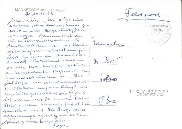 11655667 alte Postkarte Maennedorf mit Alpenpanorama postalisch gelaufen Feldpost Erhaltung siehe scans KatCode: 11470260895364