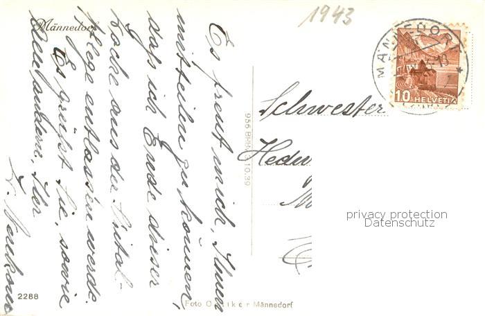 13770306 alte Postkarte Maennedorf ZH Ortsansicht mit Kirche postalisch gelaufen Erhaltung siehe scans [FriedD77] KatCode: 11470260895364