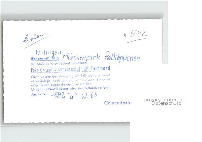 Maerchen Sagen Rotkaeppchen Maerchenpark Willingen postalisch nicht gelaufen Verlagsrohabzug (keine Postkartenrückseite) Erhaltung siehe scans