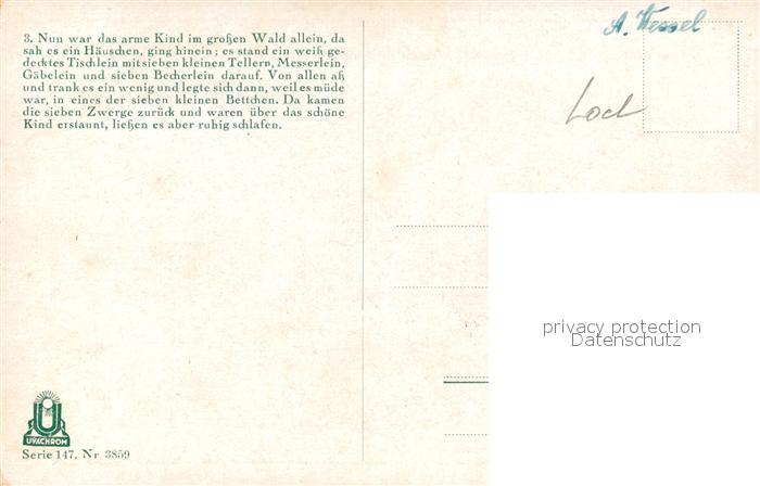 43286952 Maerchen Sagen Schneewittchen O. Kubel Nr. 3859 Serie 147 Brüder Grimm KatCode 22340000000200