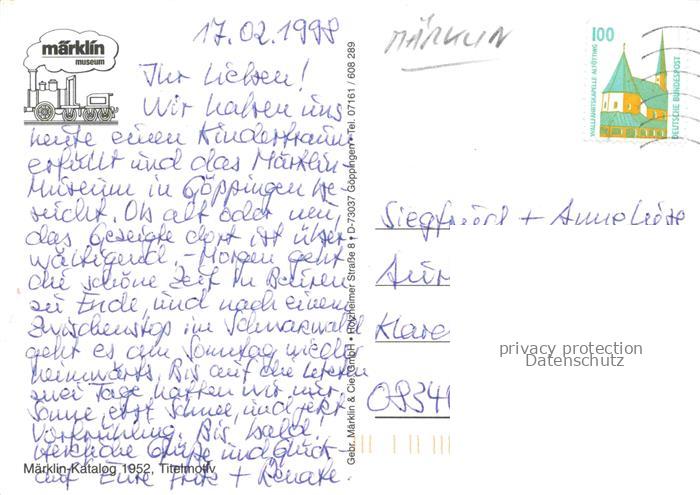 74155079 alte Postkarte Maerklin Modellbau-Eisenbahn Modell-Eisenbahn Postkarte Museum postalisch gelaufen Erhaltung siehe scans [SanaeD93] KatCode: 22520000000300