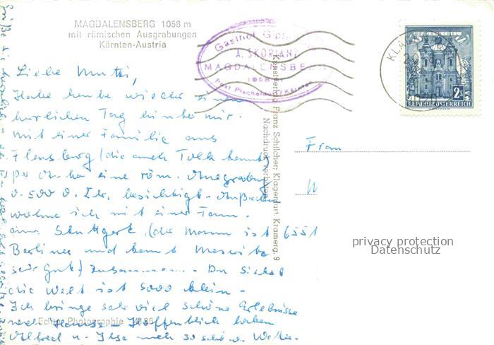 74156163 alte Postkarte Magdalensberg Klagenfurt-Villach Kaernten AT mit roemischen Ausgrabungen postalisch gelaufen Fliegeraufnahme Erhaltung siehe scans [FriedD77] KatCode: 11390211020442
