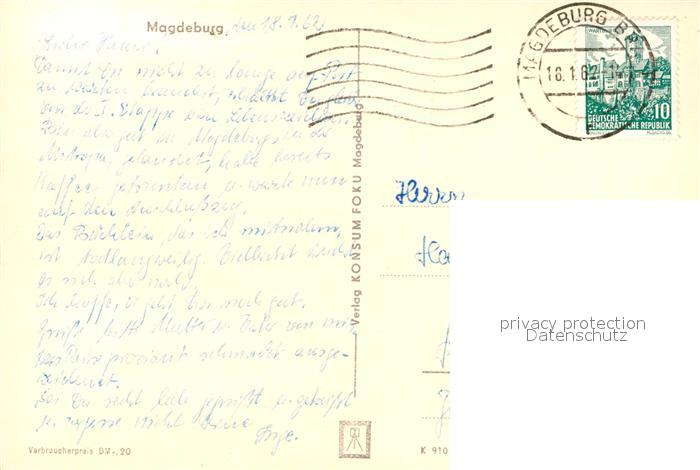 73100496 alte Postkarte Magdeburg Ausstellungsturm Dom Karl Marx Strasse Elbe Hafen postalisch gelaufen Erhaltung siehe scans [KathaD81] KatCode: 11110015003000