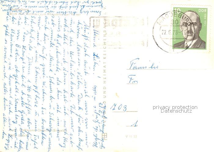 73292768 alte Postkarte Magdeburg Blick vom Rathaus zum Magdeburger Reiter postalisch gelaufen Erhaltung siehe scans [LiesaD40] KatCode: 11110015003000