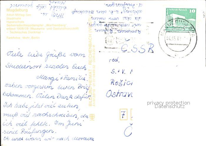 72332995 alte Postkarte MAGDEBURG CITY Adolf-Mittag-See Stadhalle Hyparschale postalisch gelaufen Erhaltung siehe scans KatCode: 11110015003000