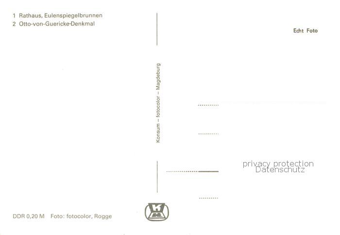 73751519 MAGDEBURG CITY Alter Markt Rathaus Eulenspiegelbrunnen Otto von Guericke Denkmal postalisch nicht gelaufen Erhaltung siehe scans [WerneD78] Wern Katcode 11110015003000