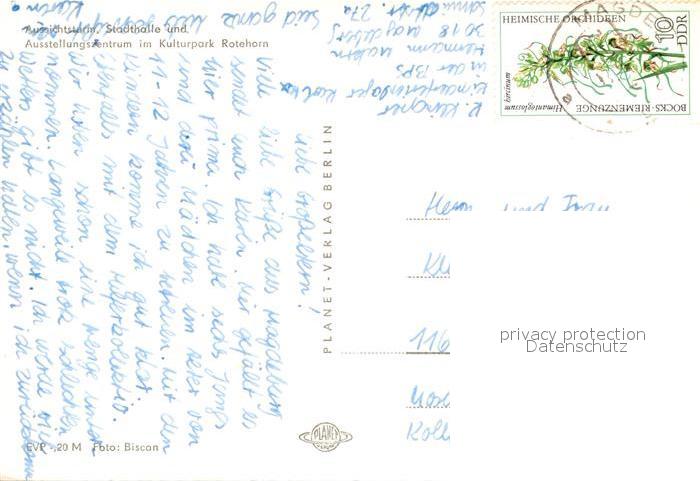 72968746 alte Postkarte MAGDEBURG CITY Aussichtsturm Stadthalle Ausstellungszentrum Kulturpark Rotehorn Nachtaufnahmen postalisch gelaufen Erhaltung siehe scans [FriedD77] KatCode: 11110015003000