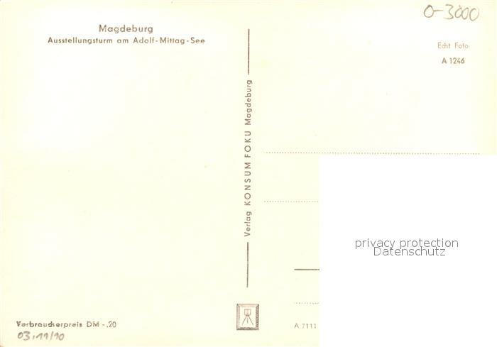 72920557 MAGDEBURG CITY Ausstellungsturm Adolf-Mittag-See postalisch nicht gelaufen Erhaltung siehe scans [PaolaD17] KatCode: 11110015003000