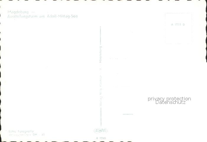 72121821 MAGDEBURG CITY Ausstellungsturm und Adolf Mittag See postalisch nicht gelaufen Erhaltung siehe scans KatCode: 11110015003000