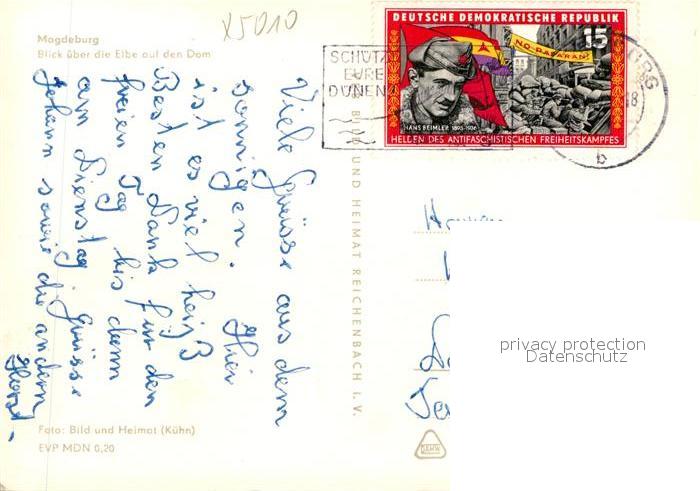72951638 alte Postkarte MAGDEBURG CITY Blick ueber die Elbe auf den Dom Frachtkahn Binnenschifffahrt postalisch gelaufen Erhaltung siehe scans [FriedD77] KatCode: 11110015003000