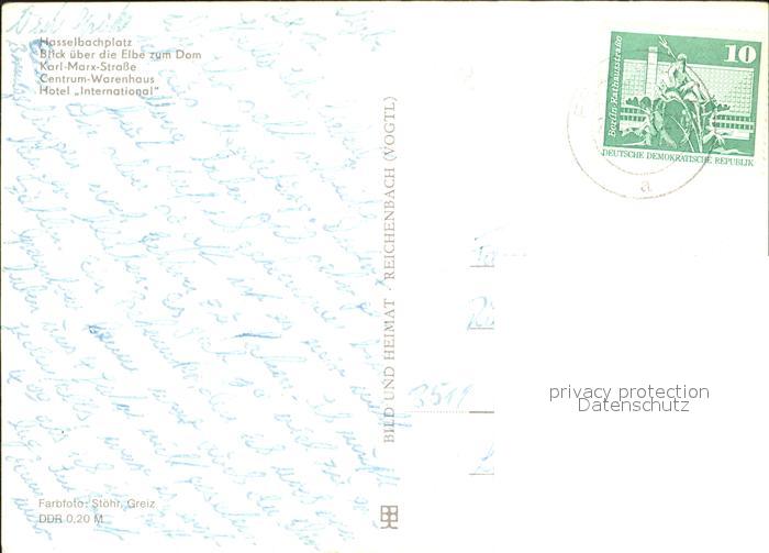 72263413 alte Postkarte MAGDEBURG CITY Blick ueber die Elbe zum Dom Karl Marx Strasse Centrum Warenhaus postalisch gelaufen Erhaltung siehe scans KatCode: 11110015003000