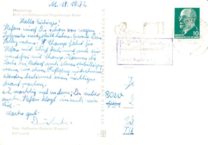 73899280 MAGDEBURG CITY Blick vom Rathaus zum Magdeburger Reiter postalisch gelaufen Erhaltung siehe scans [FriedD77] alte Postkarte Frie Katcode 11110015003000