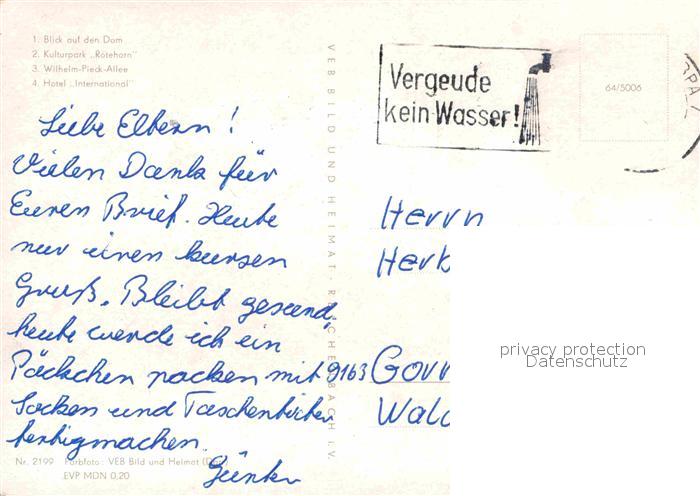 72616701 alte Postkarte MAGDEBURG CITY Dom Kulturpark Rotehorn Wilh Pieck Allee Hotel International postalisch gelaufen Erhaltung siehe scans [WerneD78] KatCode: 11110015003000