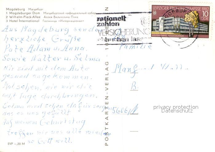 72960884 alte Postkarte MAGDEBURG CITY Dom Wilhelm Pieck Allee Hotel-International postalisch gelaufen Erhaltung siehe scans [LiesaD40] KatCode: 11110015003000
