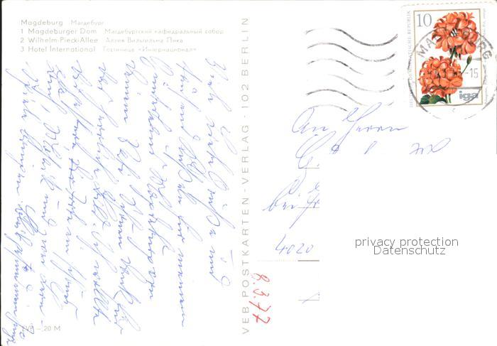 72373110 alte Postkarte MAGDEBURG CITY Dom Wilhelm Pieck Allee Springbrunnen Hotel International postalisch gelaufen Erhaltung siehe scans KatCode: 11110015003000