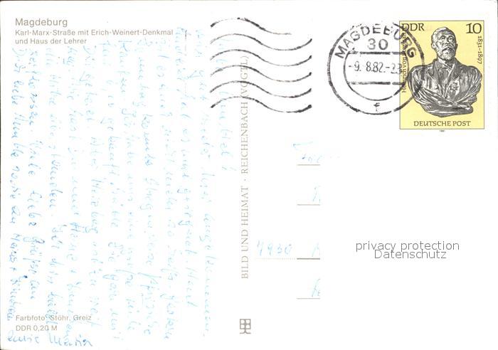 72131302 alte Postkarte MAGDEBURG CITY Erich-Weinert-Denkmal Karl-Marx-Strasse postalisch gelaufen Erhaltung siehe scans KatCode: 11110015003000