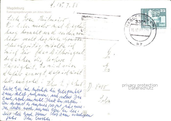 72051618 alte Postkarte MAGDEBURG CITY Eulenspiegelbrunnen am Alten Markt postalisch gelaufen Erhaltung siehe scans KatCode: 11110015003000