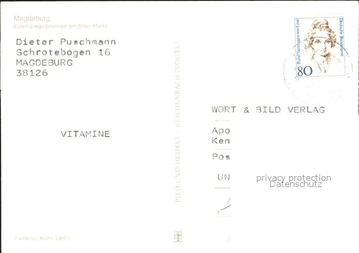 72381451 alte Postkarte MAGDEBURG CITY Eulenspiegelbrunnen am Alten Markt postalisch gelaufen Erhaltung siehe scans KatCode: 11110015003000