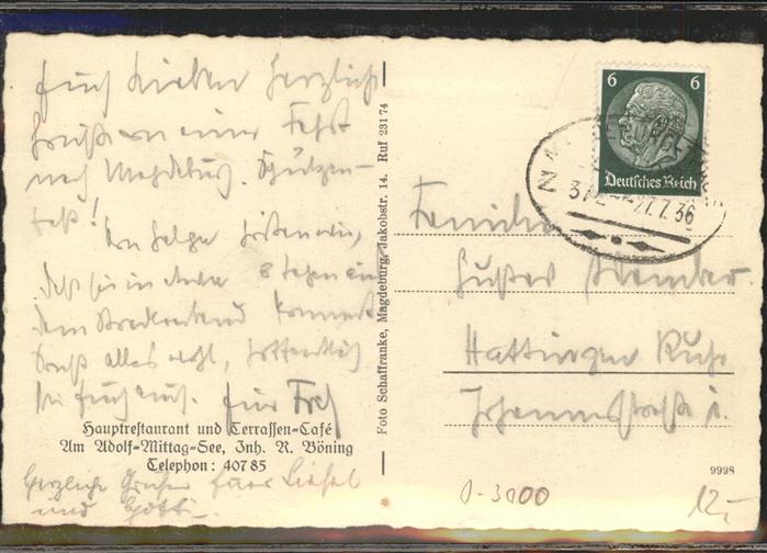 41329578 MAGDEBURG CITY Hauptrestaurant Terrassenkaffe Adolf Mittag See R. Boening postalisch gelaufen gute Erhaltung Alte Ansichtskarte Postkarte alte Postkarte hz_L Katcode 11110015003000