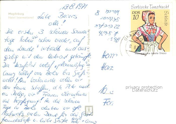 72388139 alte Postkarte MAGDEBURG CITY Hotel International postalisch gelaufen Erhaltung siehe scans KatCode: 11110015003000